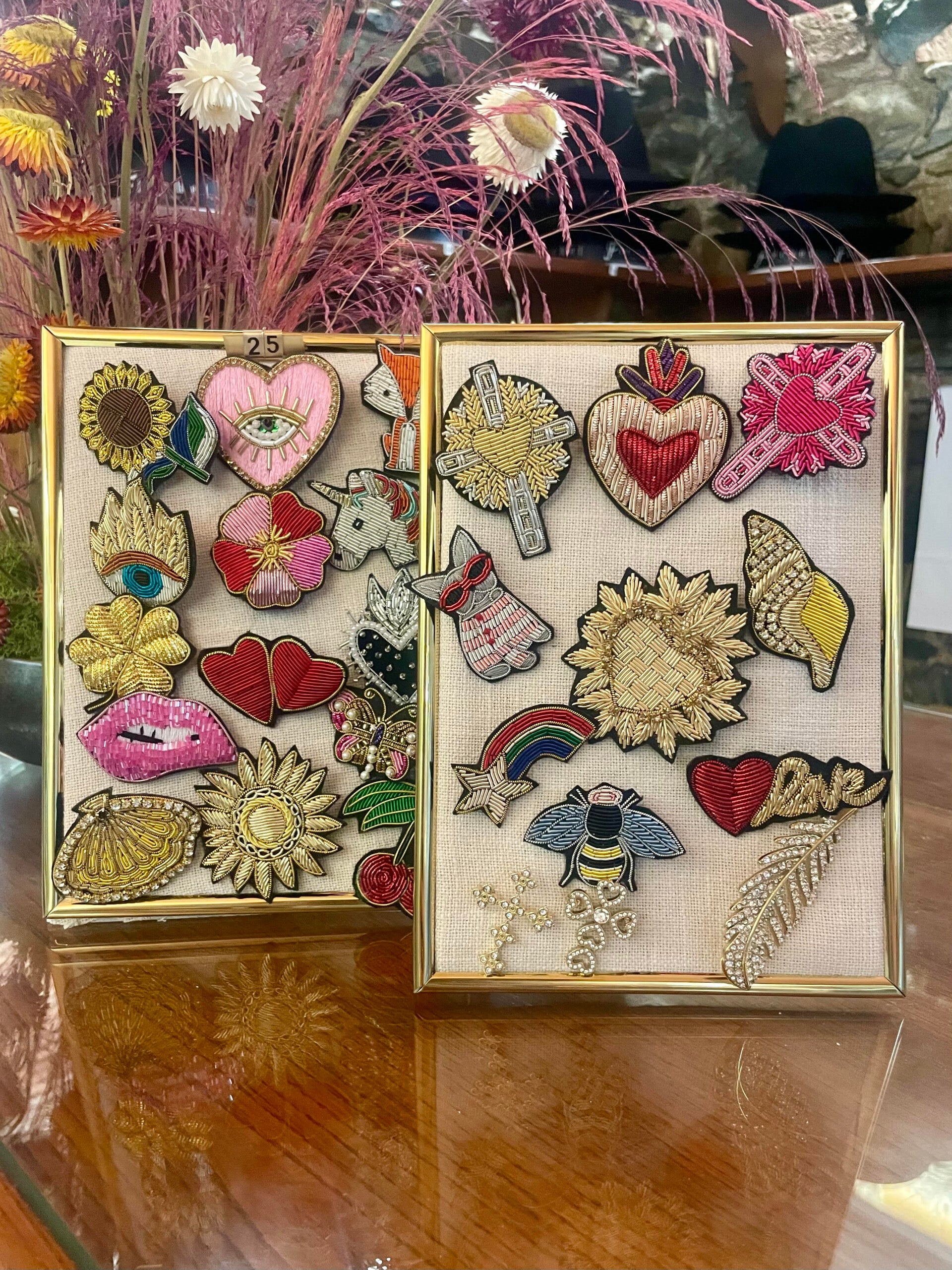 Affirmez votre personnalité grâce a nos broches brodées à la main. vous les connaissez plus classiques sur vos vestes et blazers, osez dorénavant orner vos chapeaux, bérets, bonnets...